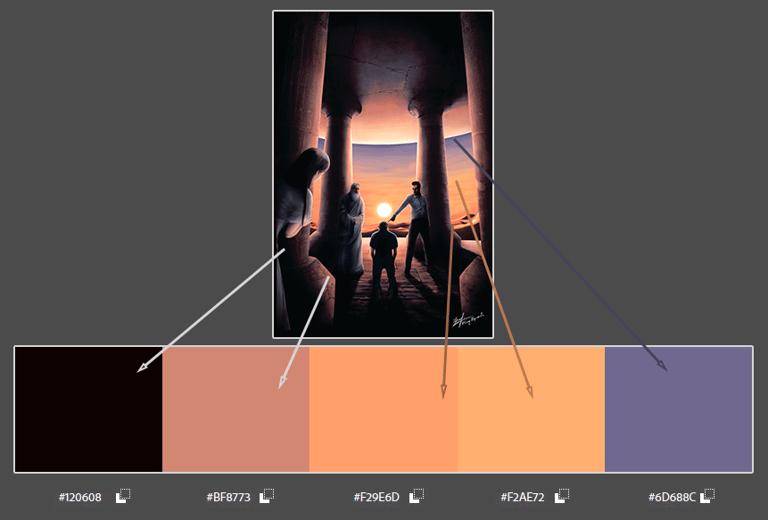 Enquanto a imagem precisava transmitir uma atmosfera tensa, representando julgamento, também era necessário retratar uma cena mágica e divina, sem que os personagens necessariamente tivessem características explícitas, destacando a escuridão de uma cena cheia de curiosidade e mistério, enquanto o sol do deserto brilha sobre eles.
