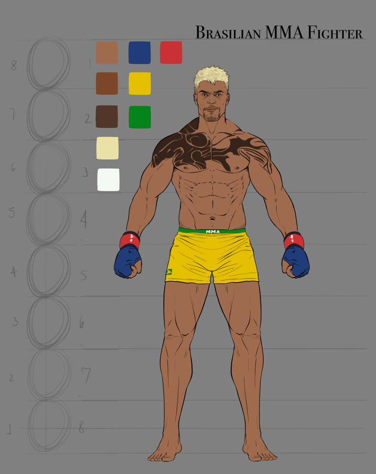 Desafio: Desenvolver personagens de diferentes nacionalidades e estilos de luta baseados em suas principais características seguindo um estilo de arte semelhante ao dos quadrinhos americanos. Cada personagem possui um background único que remete à sua história e forma de lutar. O jogo ainda se encontra em desenvolvimento sendo algumas informações sigilosas e o título desta publicação serve apenas para critério demonstrativo, não sendo o título real do game finalizado.