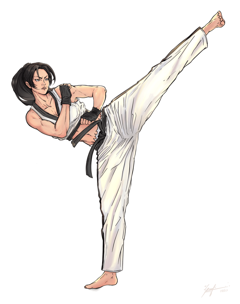 Utiliza um estilo de luta baseado no TaeKwonDo tradicional, mixando agilidade e destreza.