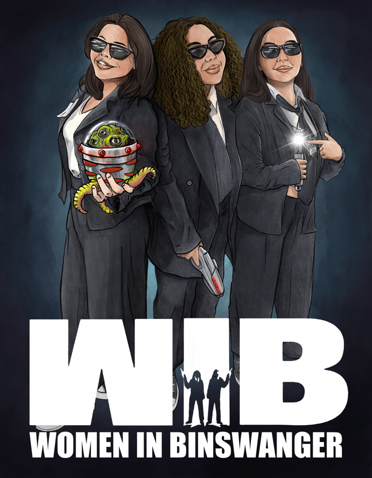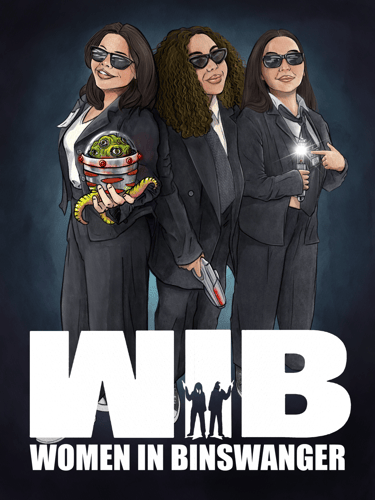 Descrição: Após a confraternização de Dias das Bruxas da empresa Binswanger Brazil, as três vencedoras do concurso de fantasias receberam como prêmio uma arte personalizada representando elas e suas caracterizações. A fantasia se tratava de WIB (Women In Black) o que deu margem para o trocadilho "Women In Binswanger".